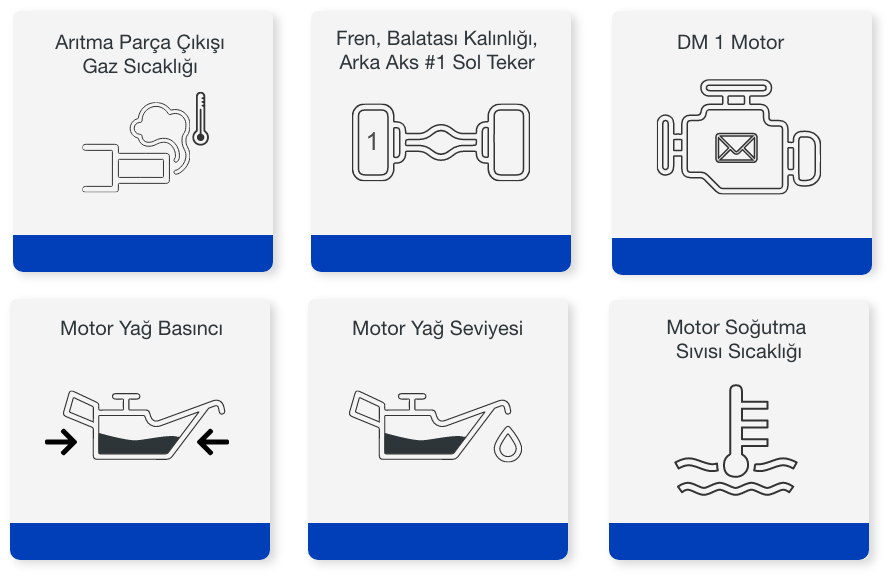Filonuzdaki araçların her biri, iş sürekliliğinizin ayrılmaz bir parçasıdır. Ancak motor, aks, şanzıman, fren vb arızaları hem operasyonlarınızı aksatabilir hem de yüksek onarım maliyetleri doğurabilir. Kestirimci Bakım sistemimiz, düşük yağ basıncı, motor aşırı ısınması, egzoz sistemi sorunları gibi kritik problemleri ve çok daha fazlasını henüz ortaya çıkmadan tahminleyerek size zaman kazandırır. Bu sayede hem araçlarınızın güvenliğini hem de işinizin kesintisiz akışını garanti altına alırsınız.